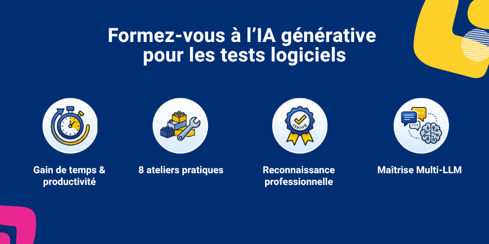 - Et aussi au travers de notre formation à l’IA générative pour les tests, qui s’appuie sur 8 ateliers de mise en pratique pour développer les savoir-faire en IA des professionnels des tests logiciels.
