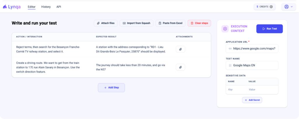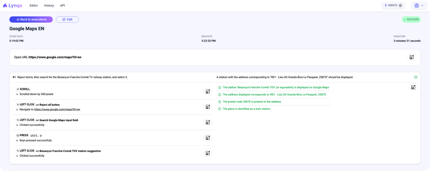 Lynqa is an AI agent that executes your test and gives you step-by-step reports and evidence.